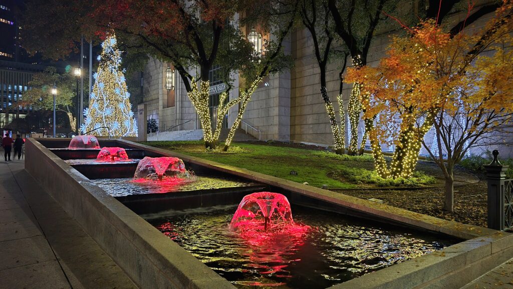 Rankkasade loppui kuin seinään vajaat 100 km ennen Dallasiin saapumista ja sää vaihtui puolipilviseen +16 asteiseen iltapäivään. Olimme hotellilla vähän yli klo 16, heitimme laukut huoneeseen ja lähdimme jalkaisin etsimään ruokapaikkaa.