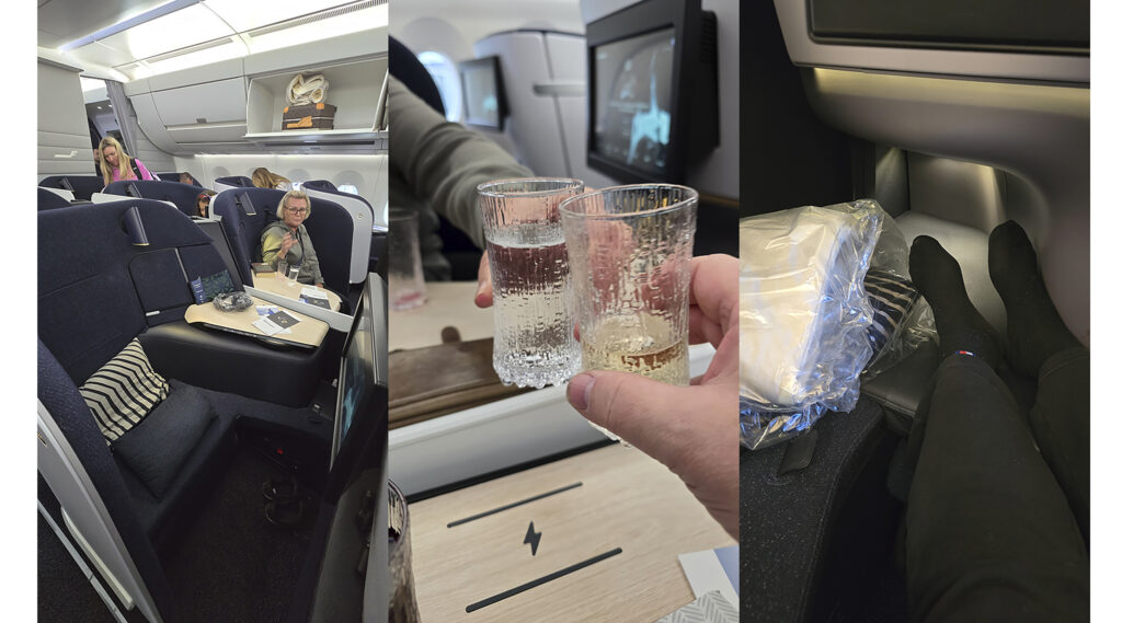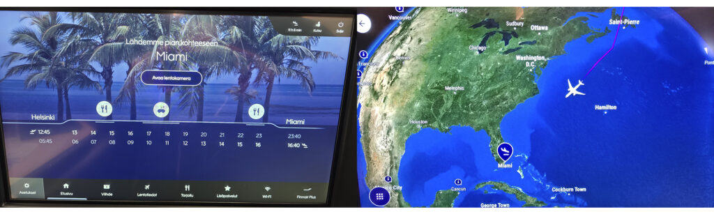 Finnair on hiljattain päivittänyt pitkänmatkan koneidensa matkustamot ja businessluokassa oli uudet AirLounge-penkit, joista saa ihan reilun kokoisen vuoteen lepuuttelua varten. Tosin lentomme lähti aamukuudelta Miamin aikaa, joten lennolla voi ottaa vain pienet siestat ruokailun jälkeen 😊