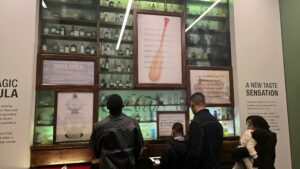 Museossa pääsimme mm. tutustumaan Coca Colan historiaan, näimme sen kuuluisan kassaholvin jossa juoman huippusalaista reseptiä säilytetään sekä pääsimme maistelemaan Coca Cola Companyn virvoitusjuomia ympäri maailman. Ei löytynyt keltaisen jaffan voittajaa.