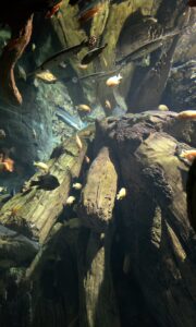 Kokismuseon vieressä nökötti Atlantan akvaario, joten kävimme samalla reissulla ihmettelemässä senkin. Paljon hauskoja mereneläviä, mm piraijat, alligaattorit, merilohikäärmeet, hait ja delfiinit hienosti toteutetussa ympäristössä. Hai- ja delfiinivideot oli pakko julkaista Facebookin puolelle, tänne blogiin en niitä oikein järkevästi osannut laittaa.