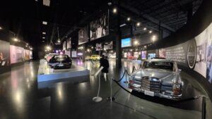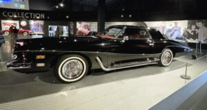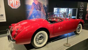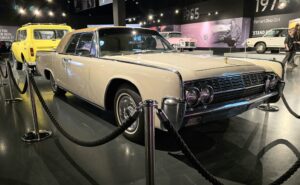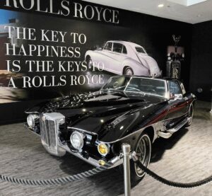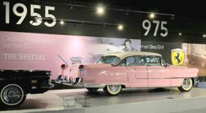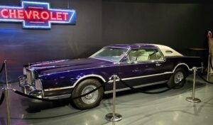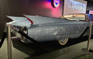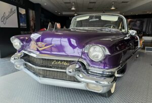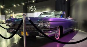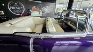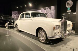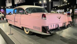 Kartanokierroksen jälkeen bussimme kaartoi varsinaiselle museoalueelle ja Sheila johdatti ryhmämme ensimmäiseksi Presley Motors -osastolle, eli katsomaan osaa Elviksen autoista. Ensimmäisenä näimme valkoisen 1965 Cadillac Eldoradon, jonka Elvis osti käytettynä. Tai siis se oli alunperin valkoinen, mutta Elvis hieroi konepeltiin viinirypäleitä ja pyysi maalaamaan auton sen väriseksi. Pinkin 1955 Cadillac Fleetwoodin Elvis osti äidilleen ja alunperin Frank Sinatran tilaaman 1971 Stutz Blackhawkin Elvis lirkutteli autokauppiaalta itselleen, kun Frank oli Vegasissa. 1973 Stuzilla Elvis ajoi viimeisen kerran Gracelandin portista kuolinpäivänään. Muita autoja mm. Priscillalle lahjaksi ostettu 280 SL Roadster Mersu, pari Mersun 600-sarjan limoa, Sam Phillipsin 1962 avo-Cadillac, musta (1960 Silver Cloud) ja valkoinen (1966 Silver Cloud) Rolls Royce, kolme Lincolnia (1957 Continental, 1962 Continental ja 1975 Mark 4) jne. Muutama moottoripyöräkin löytyi. Oli Hondaa ja Harrikkaa.