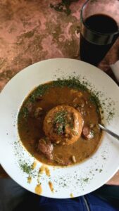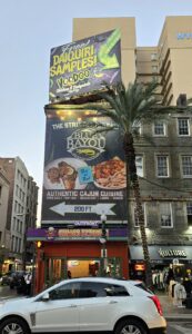 Avomallisessa bussissa jäädyttyämme reilun tunnin verran, hyppäsimme pois kyydistä French Marketin kohdalla ja etsiydyimme lämpimältä näyttävään kulmakuppilaan. Listalta löytyi kanansiipien ja osterien lisäksi mielenkiintoinen Gumbalaya-annos, jossa oli yhdistetty kana/liha/cajunmakkarapata Gumbo ja äyriäisiä sisältävä, afrikkalaisvaikutteita ja espanjalaista paella yhdistelevä Jambalaya. Molempien pohjana on louisianalainen ”pyhä kolminaisuus”: sipuli, paprika ja varsiselleri, joista viimeksimainittu on yksi inhokeistani. Annoksessani sei ei kuitenkaan maistunut liikaa ja lämmin ja sopivan tulinen annos upposi helposti. Palan painikkeeksi join paikallisen panimon ”Reasonably Corrupt” black lager -olutta.