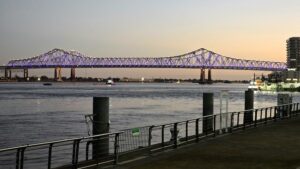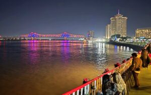 Alla myös muutama kuva iltapäivän kävelyltä ja laivarannasta napsittuja kuvia, joissa näkyy mm. Crecent City Connection -silta, johon on juuri asennettu helmikuisen Superbowl -ottelun kunniaksi 1600 ledivalaisinta. Urakka tuli maksamaan noin 21 miljoonaa dollaria, joten suht kalliita lyhtyjä. Valoihin on ohjelmoitu 20 eri tilannetta, joten niitä tullaan käyttämään vielä Superbowlin jälkeenkin 🙂