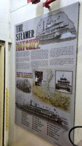 Nykyisin seilaava Natchez on jo versio 9, rakennettu vuonna 1975, mutta sen siipiratasta pyörittävä tekniikka on vuodelta 1925. Alunperin höyry kehitettiin hiilillä vettä lämmittämällä, mutta nykyisin se kehitetään dieseliä polttamalla. Pienikierroksinen höyrykone kehittää kahdella höyrykehittimellä (paapuurin puolella ”Thelma” ja tyyrpuurin puolella ”Louise”) kunnioitettavat 1500 hevosvoimaa. Valitettavasti video konehuoneesta on liian iso blogissa julkaistavaksi, joten sen voi katsoa Facebookista.