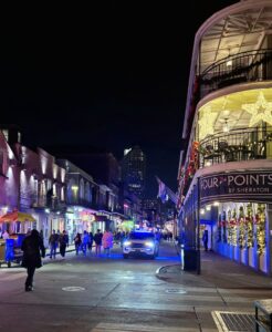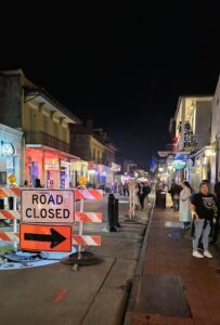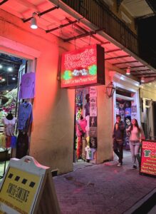 Risteilyn jälkeen kävelimme vielä Bourbon Streetin päästä päähän. Kakofonia oli valtava, eikä pari päivää aikaisemmin tapahtuneesta, 15 ihmisen hengen vaatineesta terrori-iskusta näkynyt muuta jälkeä, kuin pieni kynttilä-alttari. Katu on täynnä baareja, joissa monessa soi elävä musiikki, mutta vain yhdessä kuulimme jazzia. Viinan lisäksi kadulta voi ostaa mm. turistirihkamaa, voodoo-krääsää ja THC-nallekarkkeja 🙂 Baari-ilta ei edelleenkään tuntunut hyvältä vaihtoehdolta, joten lampsimme hotelliin nukkumaan. (Bourbon Street video myös nähtävissä Facebookissa)