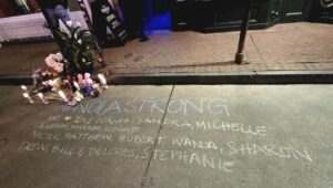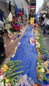 Ravintolassa ehdimme jo lämmetä sen verran, että jatkoimme jalkaisin hotellille. Reittimme kulki Bourbon Streetin kautta ja nyt Bourbonin ja Canal Streetin kulmaan oli pystytetty kunnollinen terroriuhrien muistopaikka.